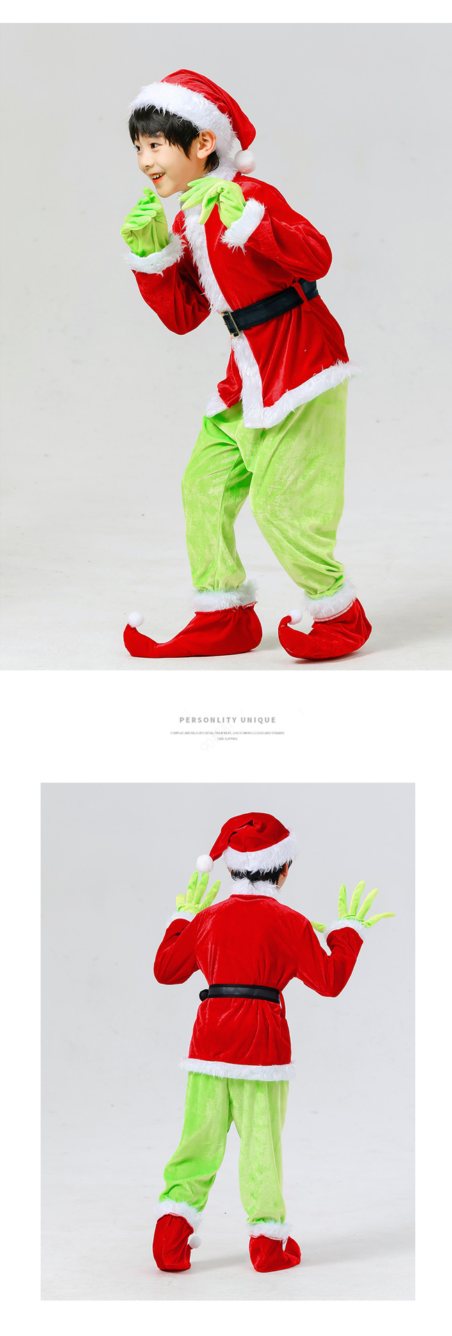 Children's Christmas Genie Green Haired Monster Christmas Party Character Dress Up Costume
