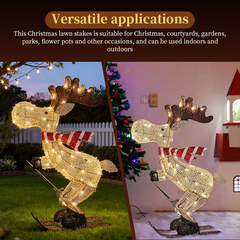 Lighted Skiing Reindeer Ornament with LED for Christmas Lawn & Tree